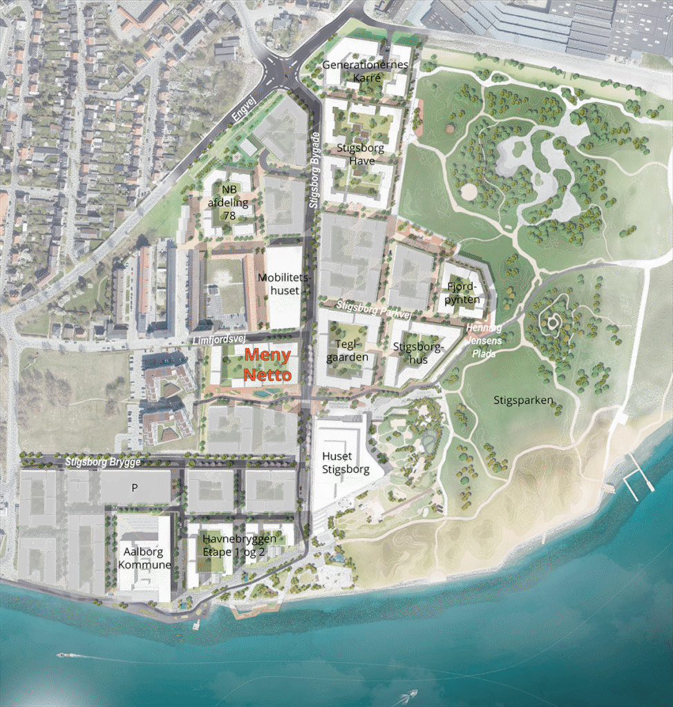 Udviklingen af Stigsborg tager endnu et skridt fremad med opførelsen af en ny boligkarré, der kombinerer butikslokaler til to store dagligvarebutikker med 90 moderne lejeboliger. Beboerne i Nørresundbys nye bydel kan således se frem til et bredt udvalg af indkøbsmuligheder i form af discountbutikken Netto og supermarkedet MENY.