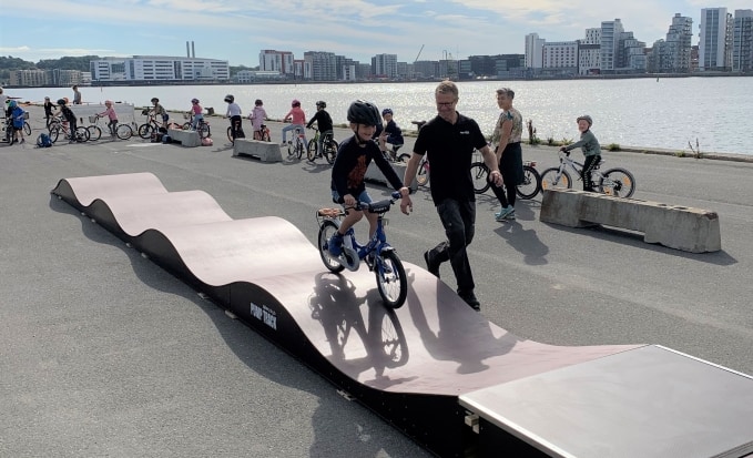 Torsdag den 3. september var første dag ud af 14, hvor pump track banen fra Dyhre Cycling midlertidigt står til afbenyttelse på Stigsborg. Med til at åbne banen var 50 1. klasses elever fra Skansevejen skole. Der blev rykket grænser, trådt hurtigt i pedalerne, og børnene blev udfordret på deres balance og motorik. Alt i
