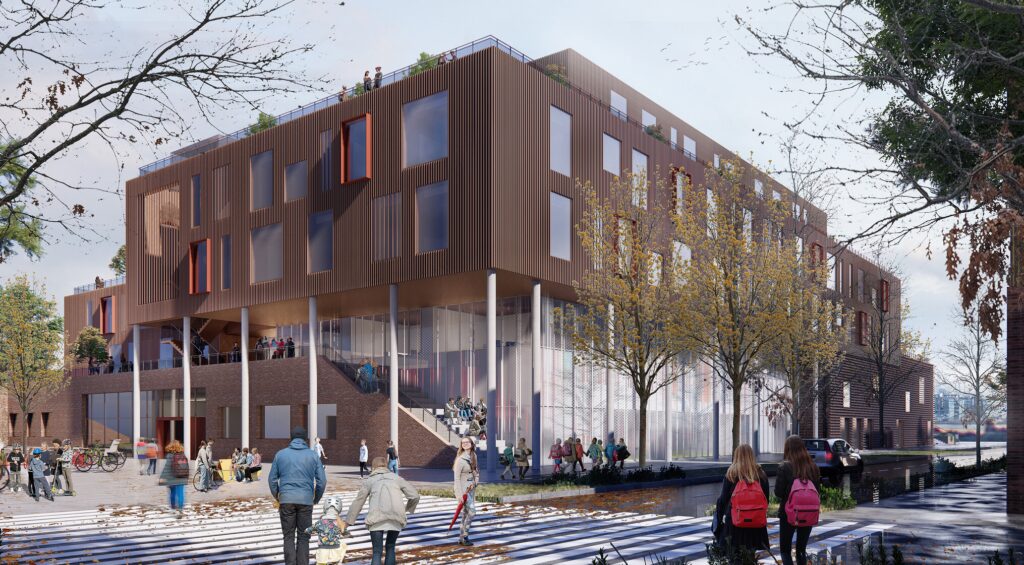 Børne- og Ungeunivers Et væsentligt element i udviklingsplanen for Stigsborg er placeringen af en skole mm. på en central og attraktiv placering på kanten af Stigsparken og tæt knyttet til Limfjorden. Placeringen skaber optimale forbindelser til naboområderne og med en oplagt maritim dagsorden i uderum og profil. Bygningen bliver bydelens fyrtårn og et arkitektonisk vartegn,